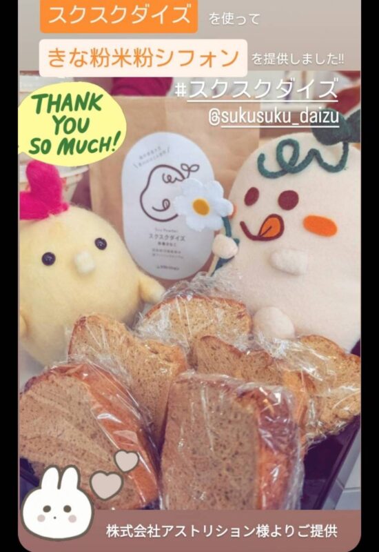 きな粉米粉シフォンケーキのきな粉は、株式会社アストリション様から( @sukusuku_daizu )、寄付していただきました!😊