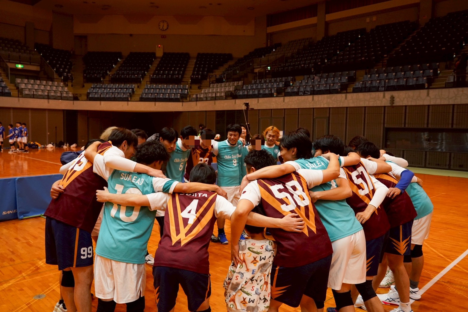 ・円陣で心を一つにする仲間たち