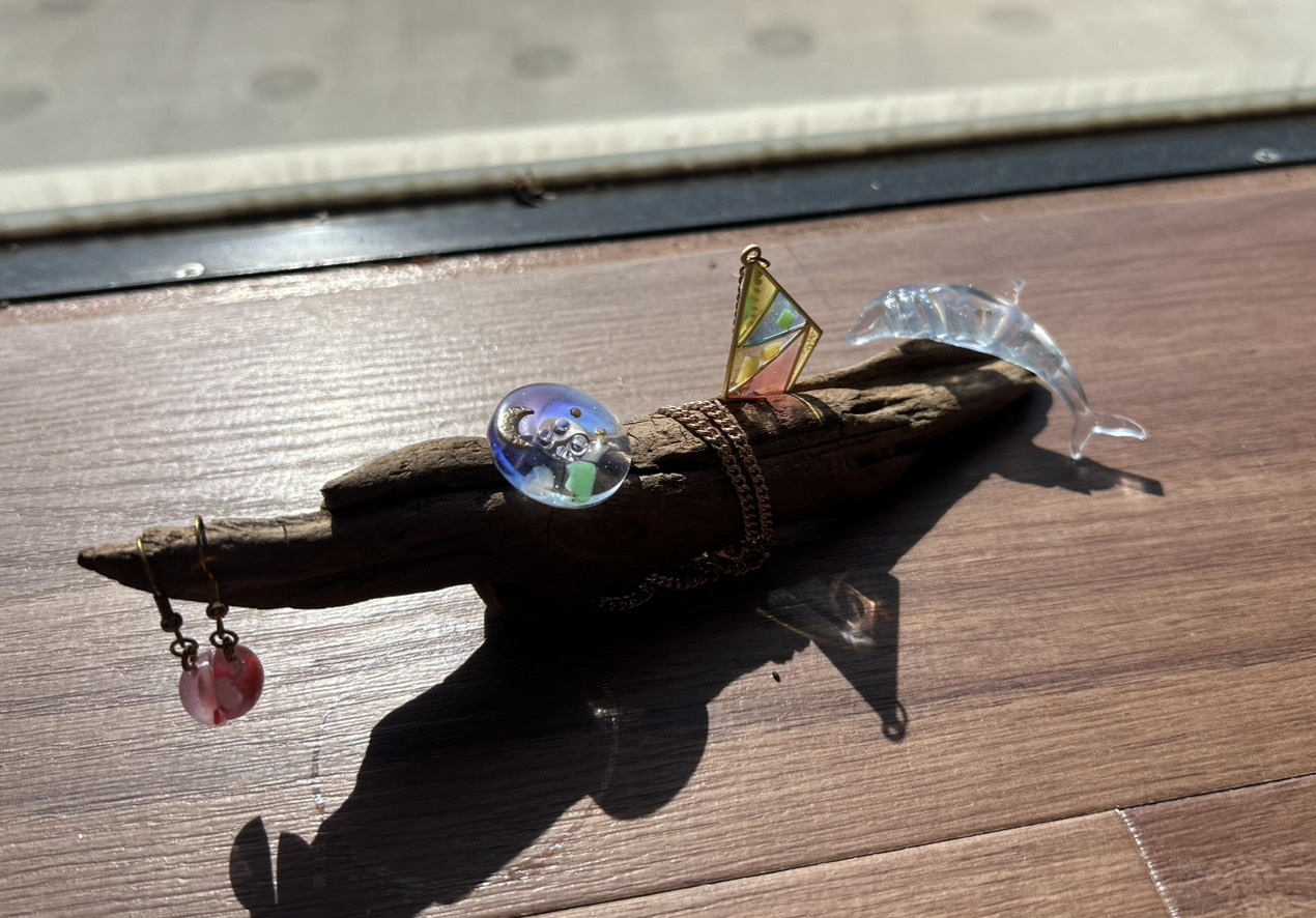 海岸で見つけた小さなプラスチック片を材料に、世界にひとつだけのキーホルダーを制作。