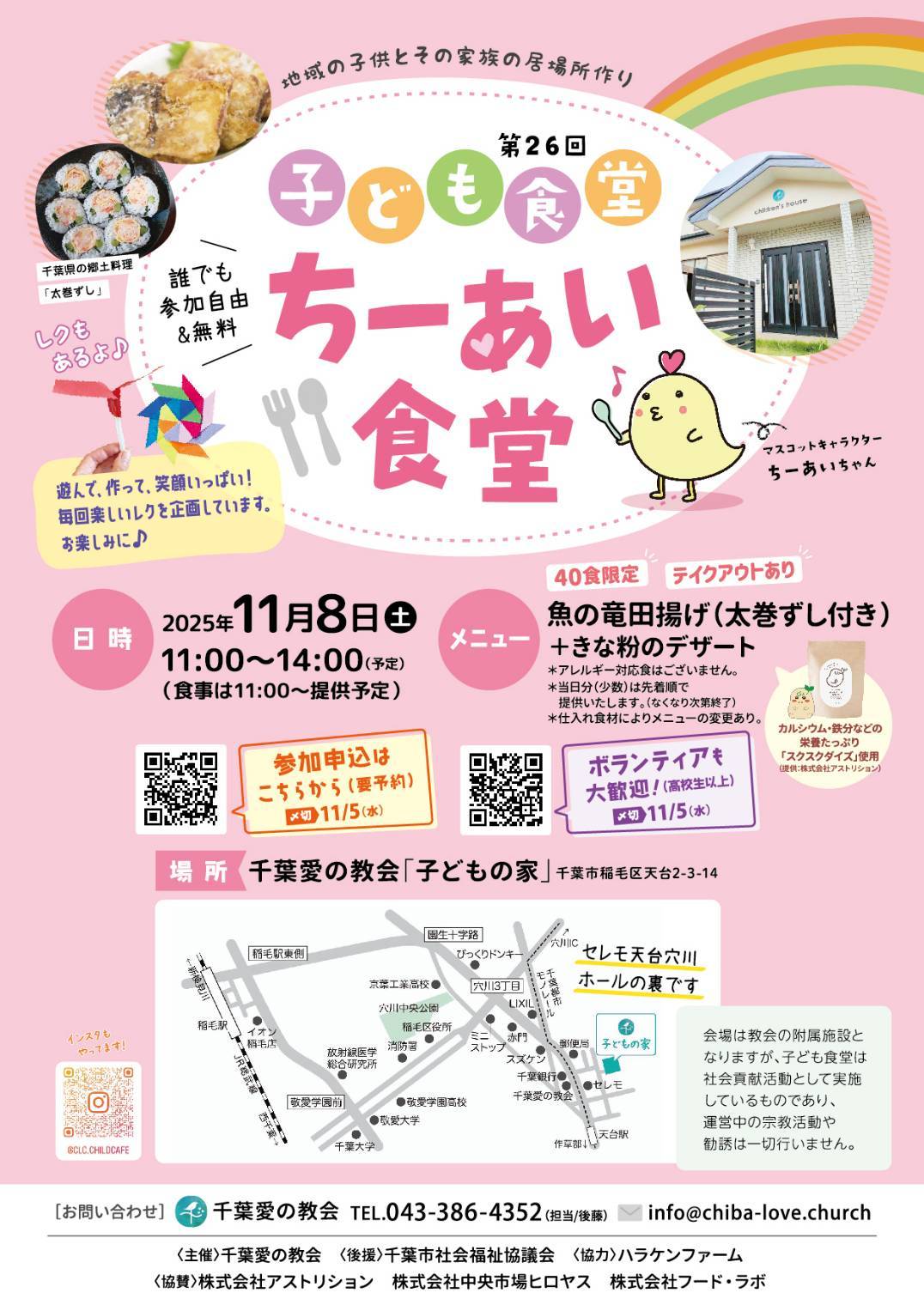 2025年11月8日(土)11時00分〜14時00分(予定)で子ども食堂を開催します!