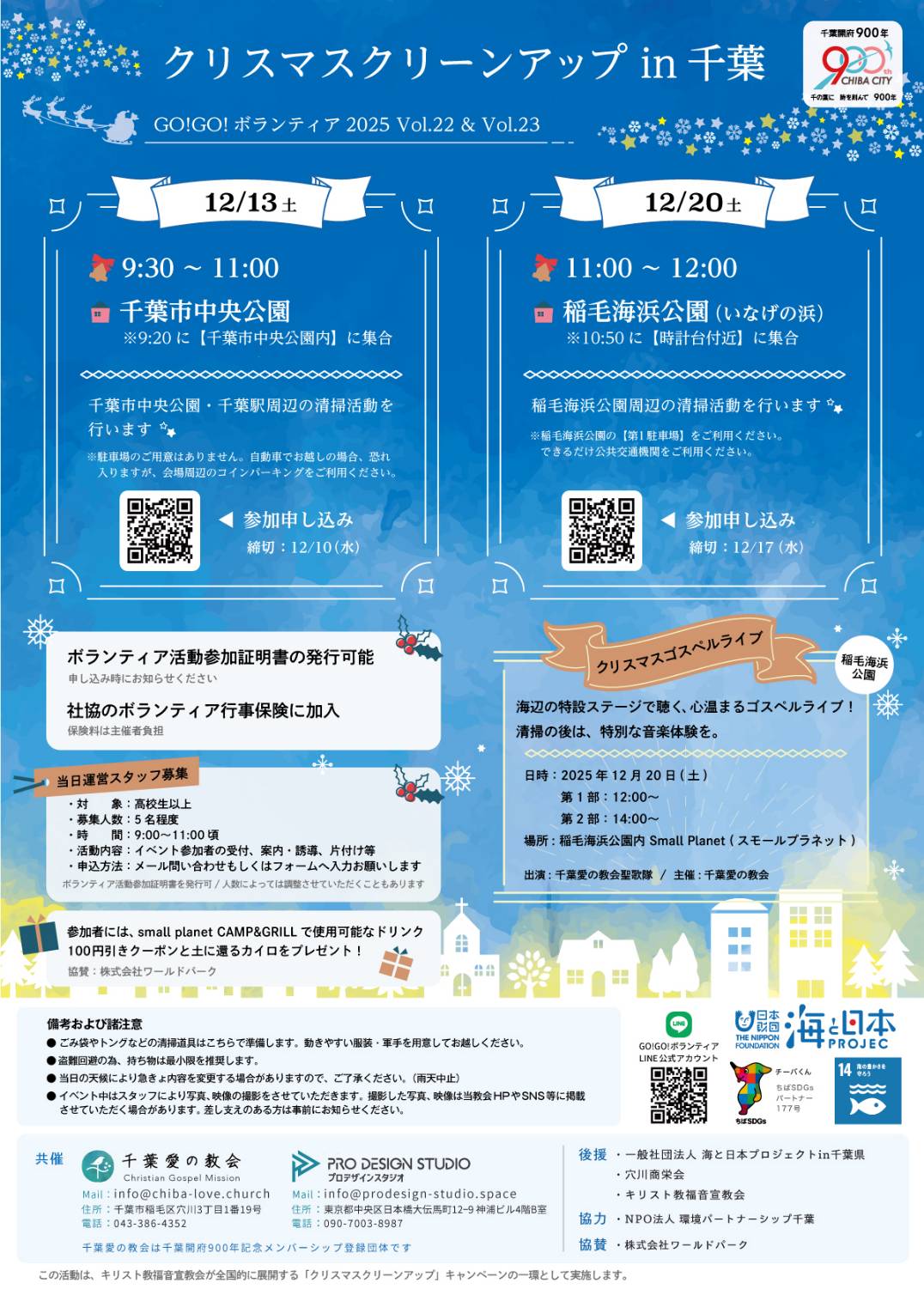 ​🎄✨【クリスマスクリーンアップ in 千葉】✨🎄​GO!GO!ボランティア2025 Vol.22 & Vol.23 & クリスマスゴスペルライブ