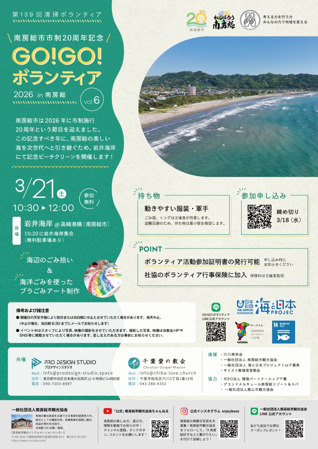 ​【南房総市市制20周年記念】​GO!GO!ボランティア2026 Vol.6 in南房総(第139回清掃ボランティア)